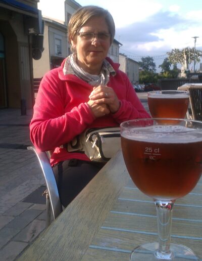 Les jeunes femmes marchent accompagnées d’un véhicule au volant duquel elles se relaient, elles ne font qu’une semaine. Le couple de canadiens, Alain et Carole, non pardon « québecquois » comme le précise Alain, veut rejoindre Santiago. L’ambiance est super d’autant que la patronne nous amène l’apéritif ce qui contribue à réchauffer l’atmosphère.