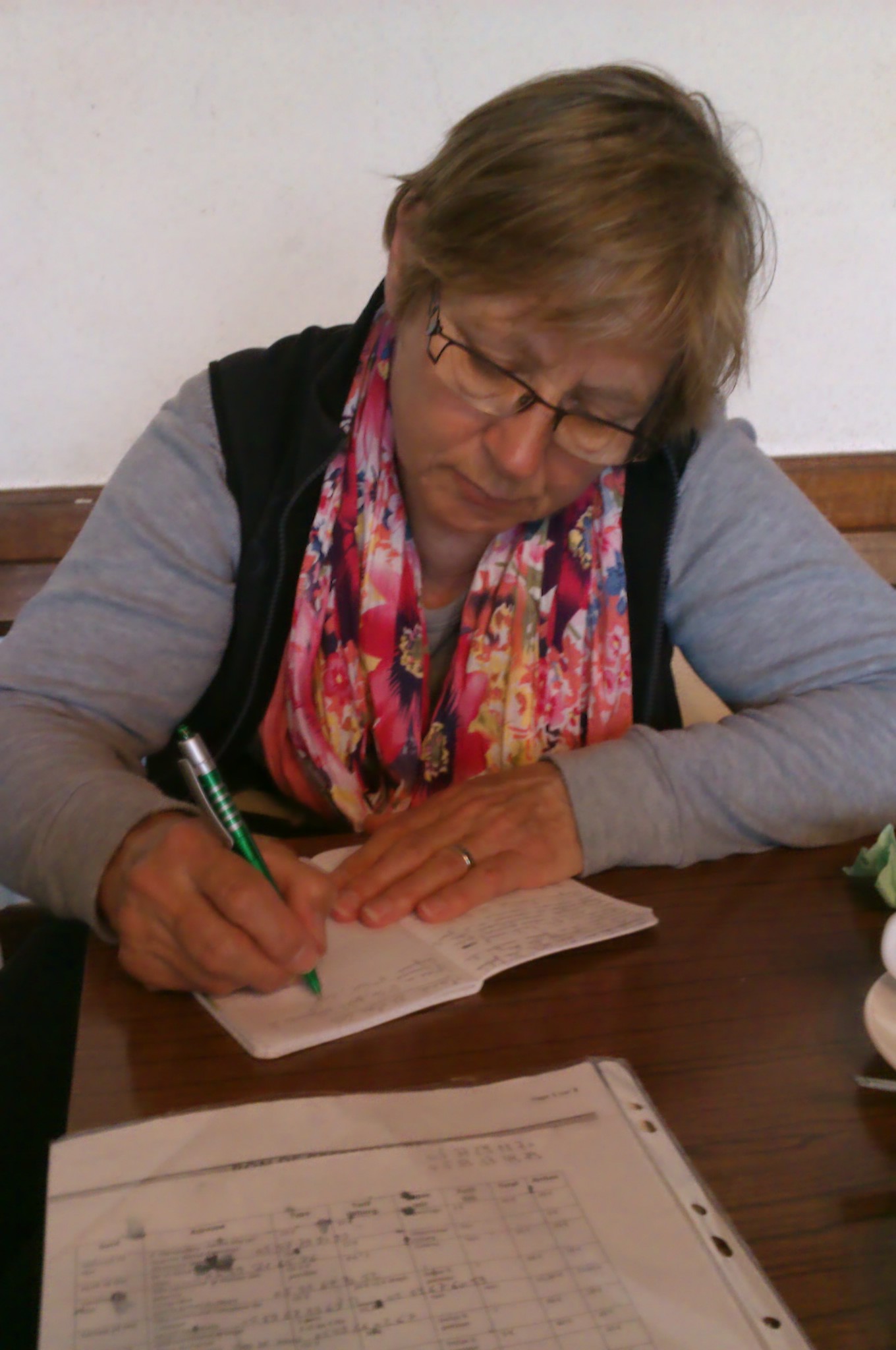 Dans le village, coup d’œil au menu du restaurant l’Escargot qui propose des menus pèlerins. La patronne sort pour nous inviter gentiment à entrer. Nous sommes mouillés, nous avons froid, une soupe et une assiette de crudités avec jambon cru près d’un bon feu nous requinquent.