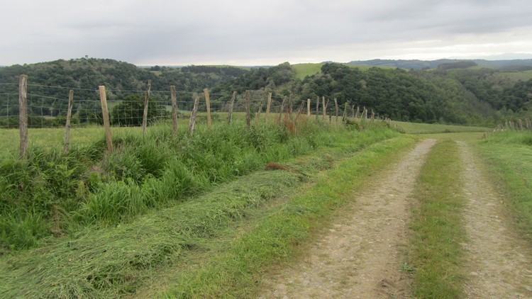 Après 6 kms, la pluie commence à tomber, elle ne nous quittera plus de la journée. Dommage car le paysage vallonné sous le soleil doit être super.