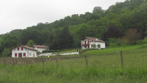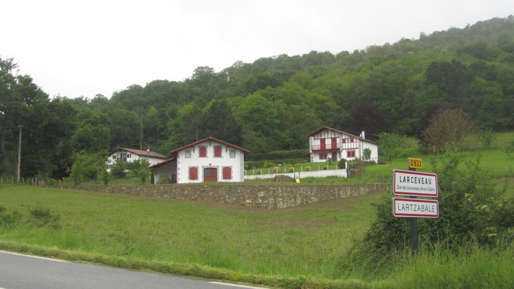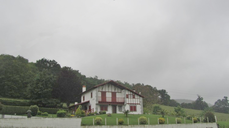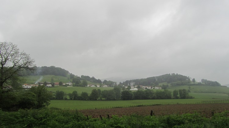 Les sentiers sont très boueux et nous retardent. Dommage car les paysages, les maisons basques blanches avec leurs volets rouges et parfois verts auraient fait de belles photos.