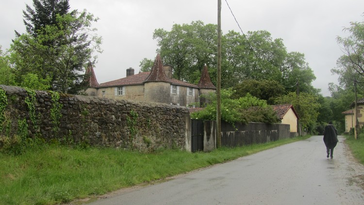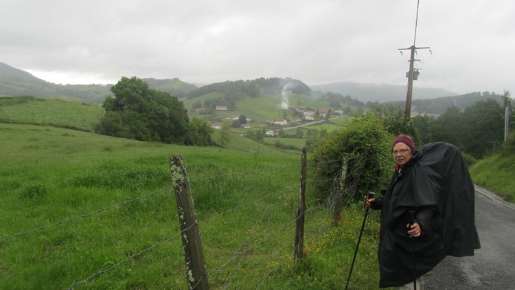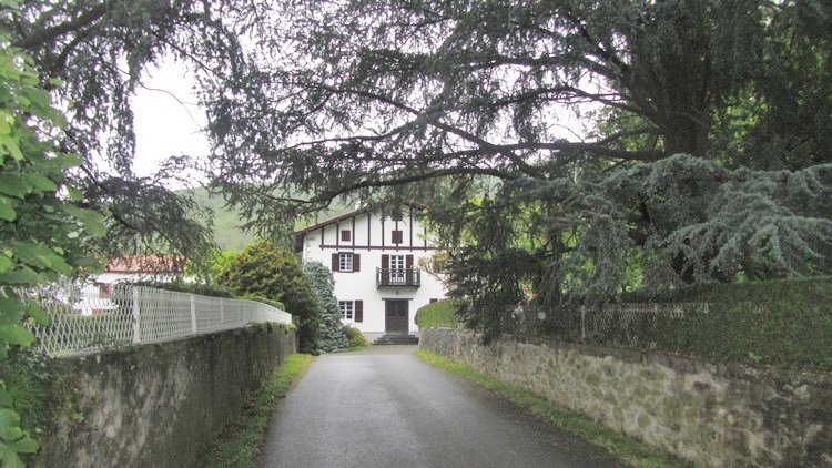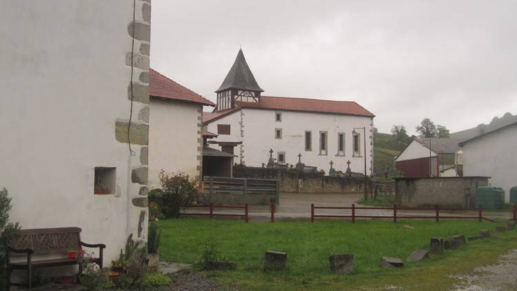 Les jardins sont bien entretenus, les arômes devant les maisons sont magnifiques. Fin de matinée, la pluie a redoublé, nous nous arrêtons à Gamarte pour prendre un café et manger une part de gâteau dans une ferme qui offre un abri pour pèlerins et quelques produits régionaux.