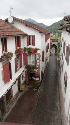 Nous arrivons assez vite à St Jean Pied de Port par la porte St Jacques, très belle porte à l’entrée de la rue piétonne qui donne sur la rue touristique de la Citadelle.