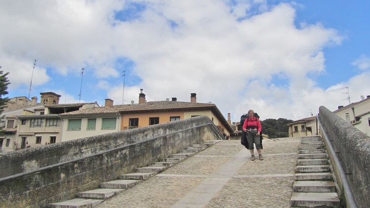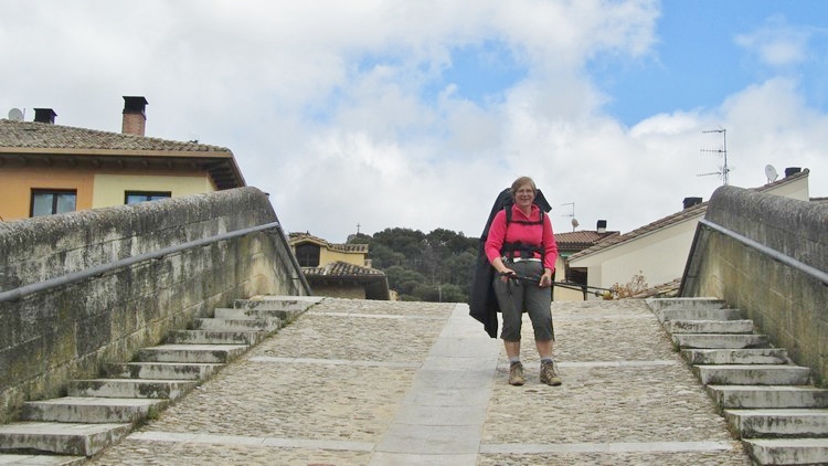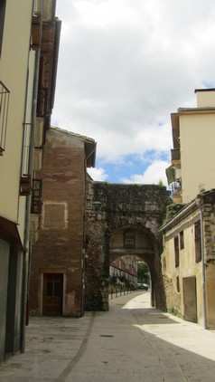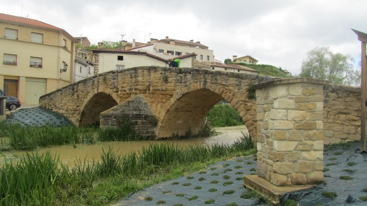 Aujourd’hui, je compte m’arrêter dans la banlieue d’Estella à Aregui. A Estella, nous prenons plusieurs photos de l’église et du pont menant au centre, le soleil est revenu.
