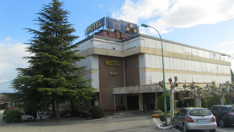 Après une nouvelle grimpette sous les bourrasques, nous arrivons à l’hôtel où nous avons la surprise de retrouver la trace du chemin. Facilité pour demain mais à cause du mauvais temps nous avons fait l’impasse sur le Monastère que nous apercevions de la route. Dommage pas de photo du Monastère et pas de fontaine à vin puisqu’ils sont derrière nous. Tant pis.