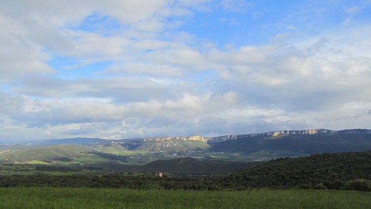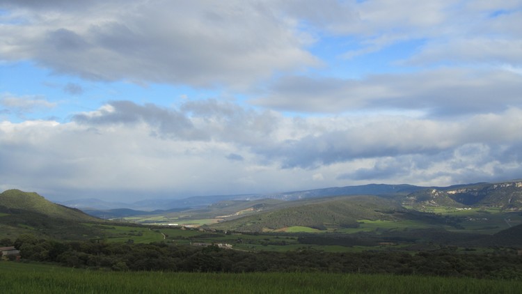 Le soleil étant là malgré tout, nous pouvons voir la longue barre rocheuse en fond de paysage. Ce doit être la sierra de Loquiz qui cache le parc naturel de Urbasa y Andia. Enfin une belle photo à faire.