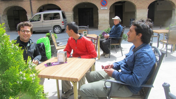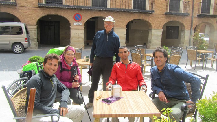 Les bretons sont aussi à Torrès del Rio, nous les retrouvons ainsi que les mexicains à la terrasse d’un bar sur la petite place. C’est le lieu de rendez-vous de tous les pèlerins.