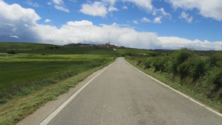 Surprise en reprenant la route nous nous apercevons que Sansol se trouve juste en dessous de Torrès del Rio. Les villages traversés jusqu’à présent sont souvent sur une butte et les rues sont toutes bétonnées ou carrelées, pas un brin d’herbe ou de fleurs.