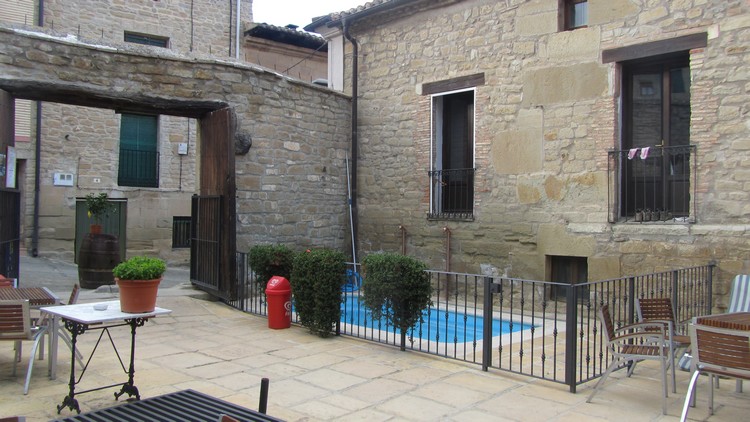 Arrivés à Los Arcos, passage par des rues dont l’accès peut être barré par des barrières très solides. Certaines portes de maisons sont équipées de grilles. J’ai cru à des lâchers de taureaux dans la ville mais par la suite j’ai appris qu’il s’agit de lâchers et de corridas de vaches pour amateurs.
