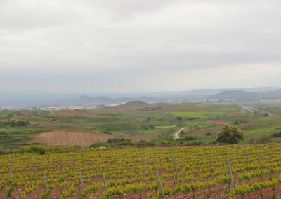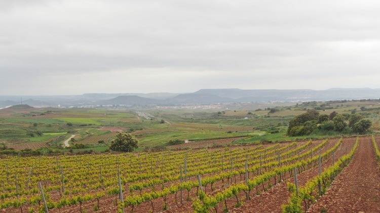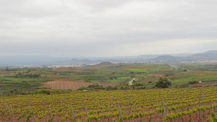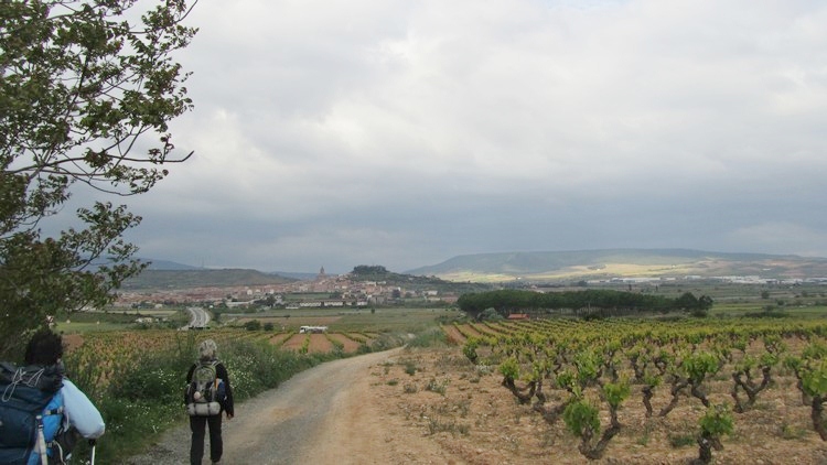 Toujours le même paysage, des vignes à perte de vue sous un ciel gris et nuageux. Avant l’entrée dans Najera, nous passons une zone industrielle. La ville est très étendue. Il est passé midi, nous avons très faim, nous nous arrêtons pour casser la croûte en bordure du chemin.