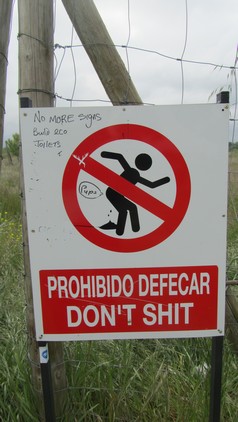 Au plus haut nous faisons une pause et sommes rattrapés par Madeleine et Dédé. Quelques mots, une photo d’un panneau d’interdition très spécial, casse croûte et on repart.