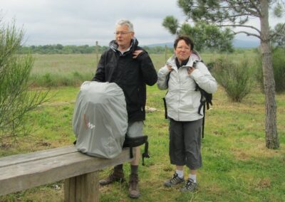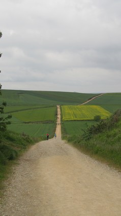Dès la sortie du village nous avons une belle grimpette ensuite le chemin sera régulier sans particularité si ce n’est toujours des vignes et des champs de blé. Nous gardons une bonne cadence car le terrain est plutôt plat. Les kilomètres sont indiqués sur des poteaux tout au long du chemin, c’est une très bonne idée pour se situer par rapport au topo guide.