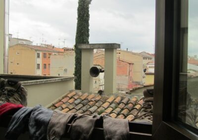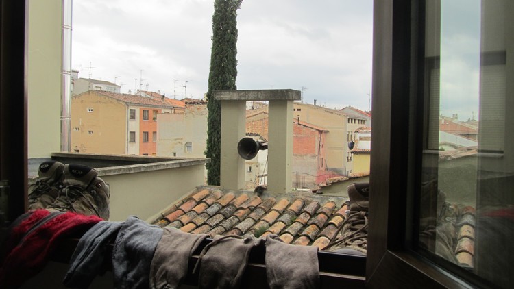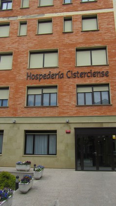 Nous avons réservé à l’Abbaye cistercienne côté hôtel. Par erreur, nous entrons du côté gîte mais à l’accueil on nous indique que la réservation concerne l’Hospederia et qu’il faut ressortir pour faire le tour du pâté de maisons. Ce que nous voyons du gîte ne paraît pas engageant.