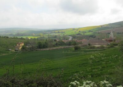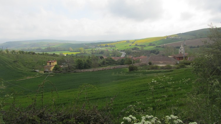 Jusqu’à Tosantos, le chemin en gravier longe la route. Paysages vallonnés et de nouveau des cultures céréalières.