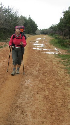 Petit déjeuner à 6 H 45 et en route à 7 H 10. Le ciel n’est pas très clair mais il ne fait pas froid. Nous sortons de la ville avec d’autres pèlerins comme tous les matins.