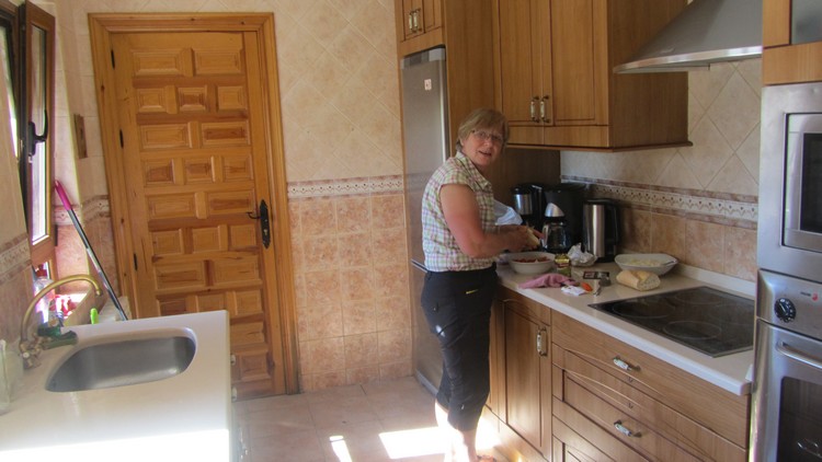Nous rejoignons la Casa Del Sol (casa rurale), chambre bien avec cabinet de toilette, cuisine à notre disposition. L’épicerie juste en face nous permet de faire les courses pour préparer notre repas du soir. Dîner dans le jardin au soleil, nous partageons notre table avec un couple de Brest. Ils sont partis fin avril du Puy en Velay.
